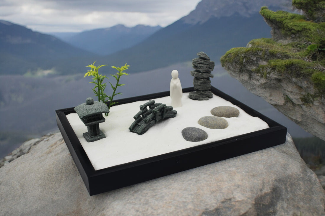 Mini Zen Garden - Temple Monk Crossing Bridge