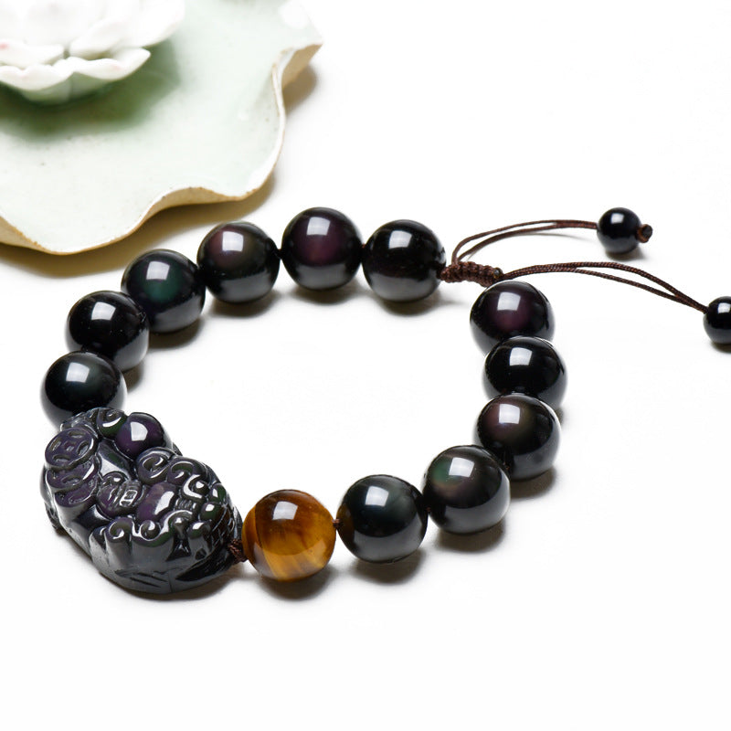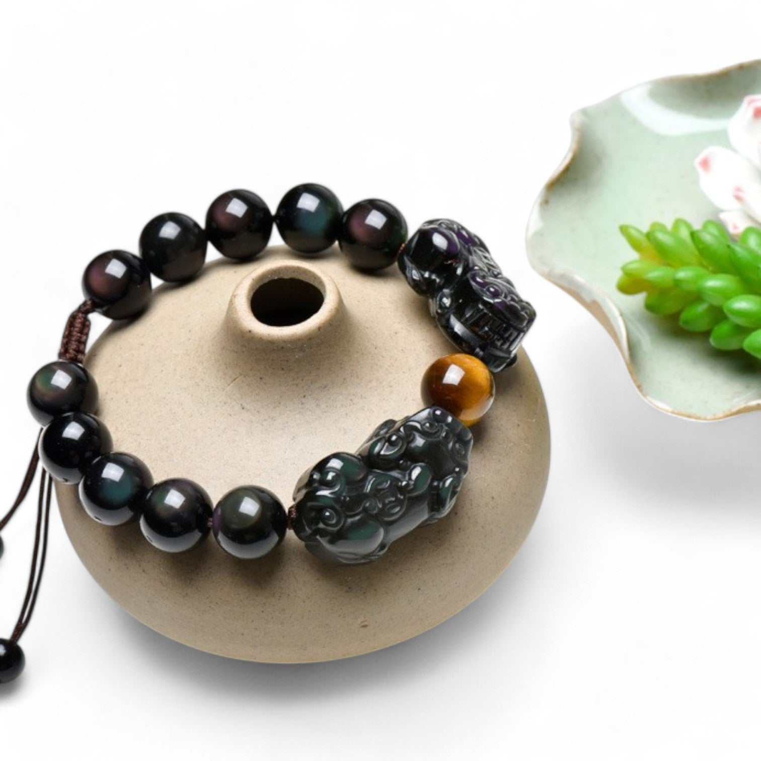 Black Obsidian Pixiu Bracelet - Dark Jade