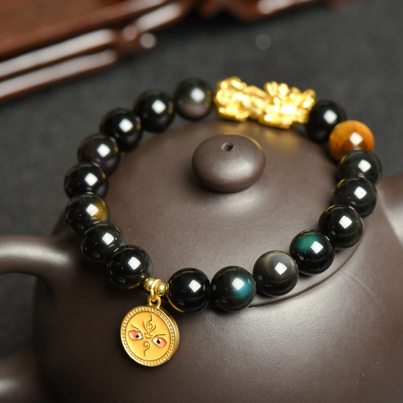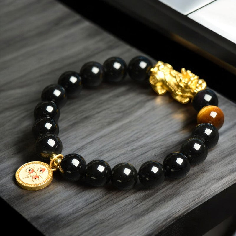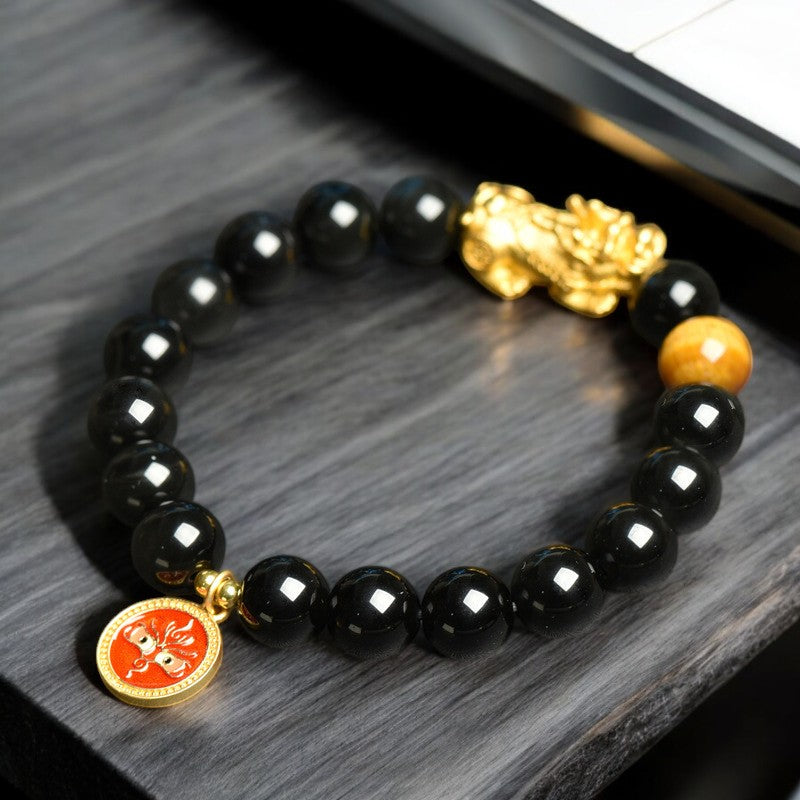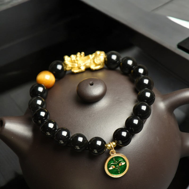 Black Obsidian Pixiu Bracelet - Tibetan Wealth Gods